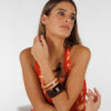 El Brazalete Lagos es versátil y elegante, ideal para elevar un look de invitada con un vestido fluido, pero también para lucir con un conjunto más casual de pantalón de lino y top veraniego.