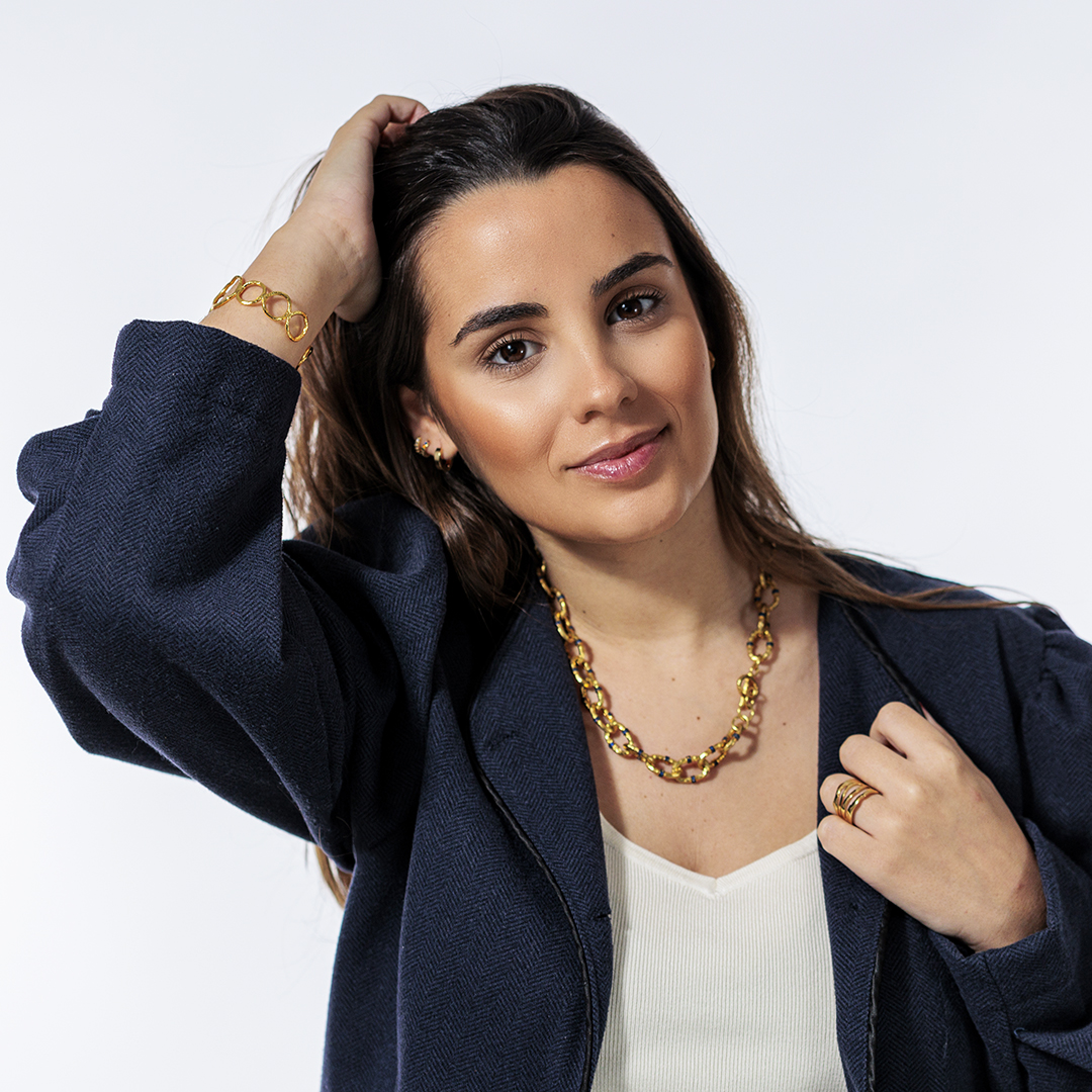 El Brazalete oro Rabat es una de esas piezas que, sin hacer ruido, se convierte en protagonista. Elegante, actual y con un diseño que engancha desde el primer momento. Una joya pensada para elevar cualquier look con ese toque especial que tanto nos gusta.