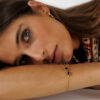 Si eres de las que ama los accesorios con rollo único y un toque místico, el Brazalete oro y piedra Ra te va a enamorar. Es una de esas piezas que no pasan desapercibidas: una pulsera rígida con baño de oro de 18 quilates y una piedra natural de ónix en el centro, que le da carácter, fuerza y un aire elegante pero muy actual.