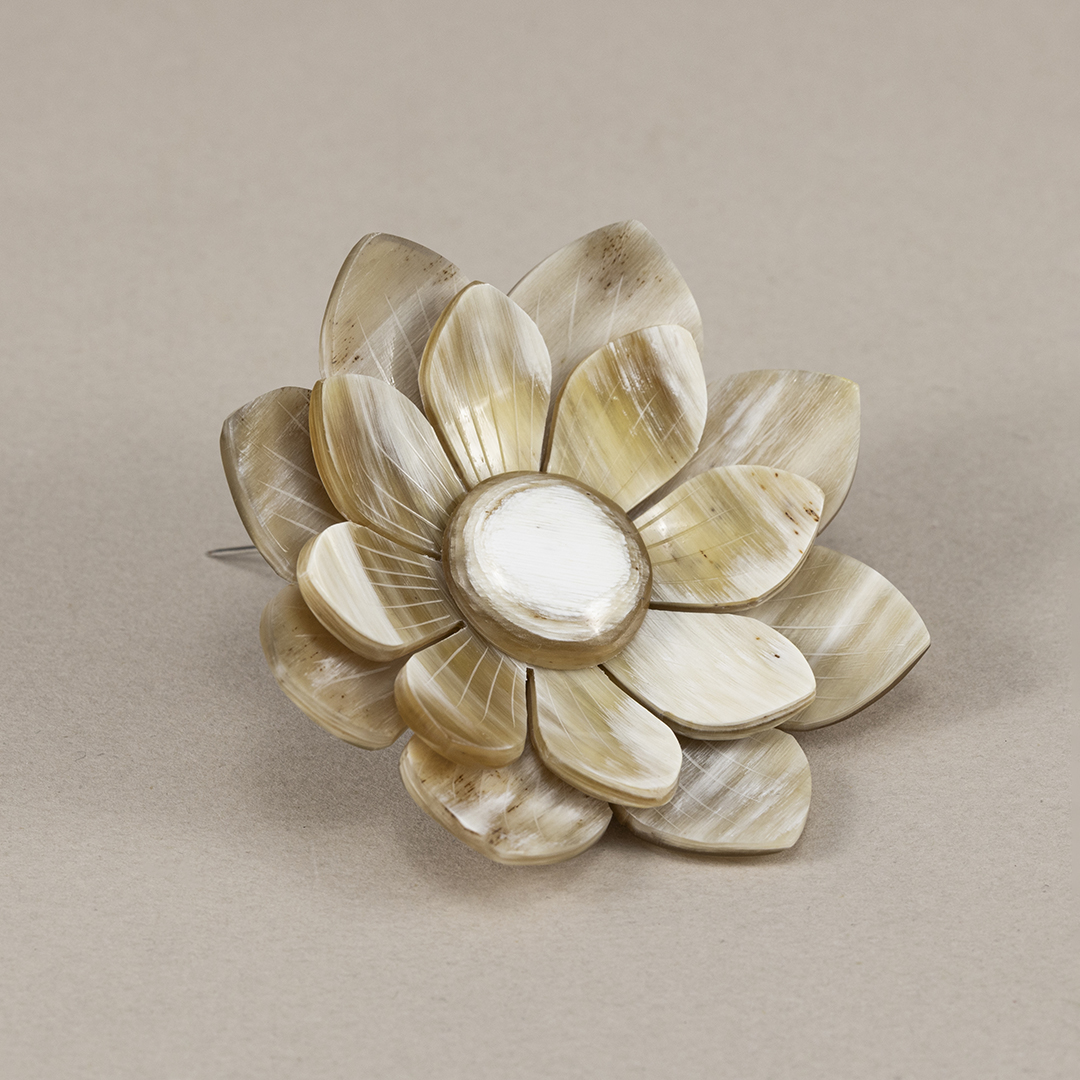 El Broche Magnolia Marfil es una de esas piezas que definen la elegancia natural de Darwin Collection. Tallado completamente a mano en cuerno de búfalo, cada pétalo tiene su propia forma y tonalidad, lo que convierte a cada broche en una joya única, imposible de repetir. Su acabado pulido deja ver las vetas naturales del material, aportando una luz cálida y orgánica que realza cualquier look.