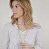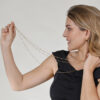 La idea detrás de este diseño es que puedas usar la cadena de múltiples formas. Puedes darle una vuelta, dos vueltas, o incluso llevarla con tres vueltas a diferentes alturas, gracias a su cómodo cierre de mosquetón. ¡Tú decides cómo llevarla!