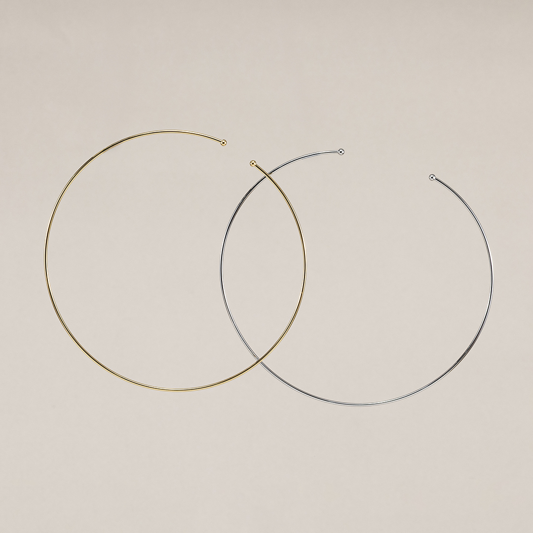El Choker Circle es ese básico minimalista que no puede faltar en tu colección de joyas. Está fabricado en acero inoxidable, disponible en doradito o en plateado, para que puedas elegir el acabado que mejor vaya con tu estilo. Su diseño rígido y fino descansa justo sobre la clavícula, creando un efecto súper elegante y luminoso que estiliza muchísimo la zona del cuello.