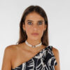 En la foto puedes ver el acabado en perla blanca, pero tenemos buenas noticias: como todas nuestras piezas se crean en nuestro taller de Sevilla, ¡puedes personalizar tu choker a tu gusto! Solo tienes que contactar con nosotras por WhatsApp y lo haremos realidad para ti.