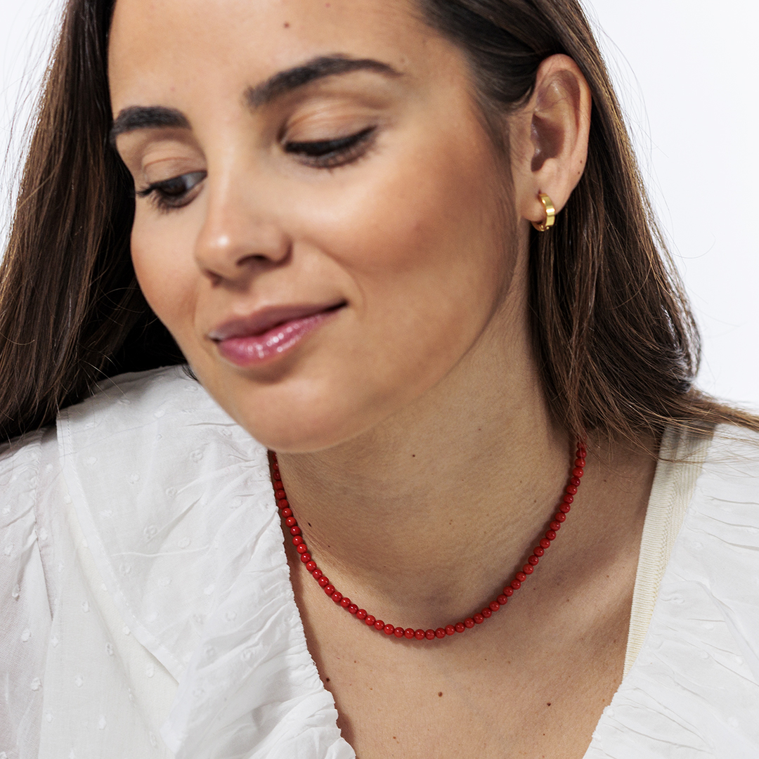 El Collar Coral es una de esas piezas de joyería que nunca pasan de moda. Clásico, elegante y con personalidad, está compuesto por auténtico coral natural en forma de pequeñas cuentas redondas que crean un diseño delicado y atemporal.
