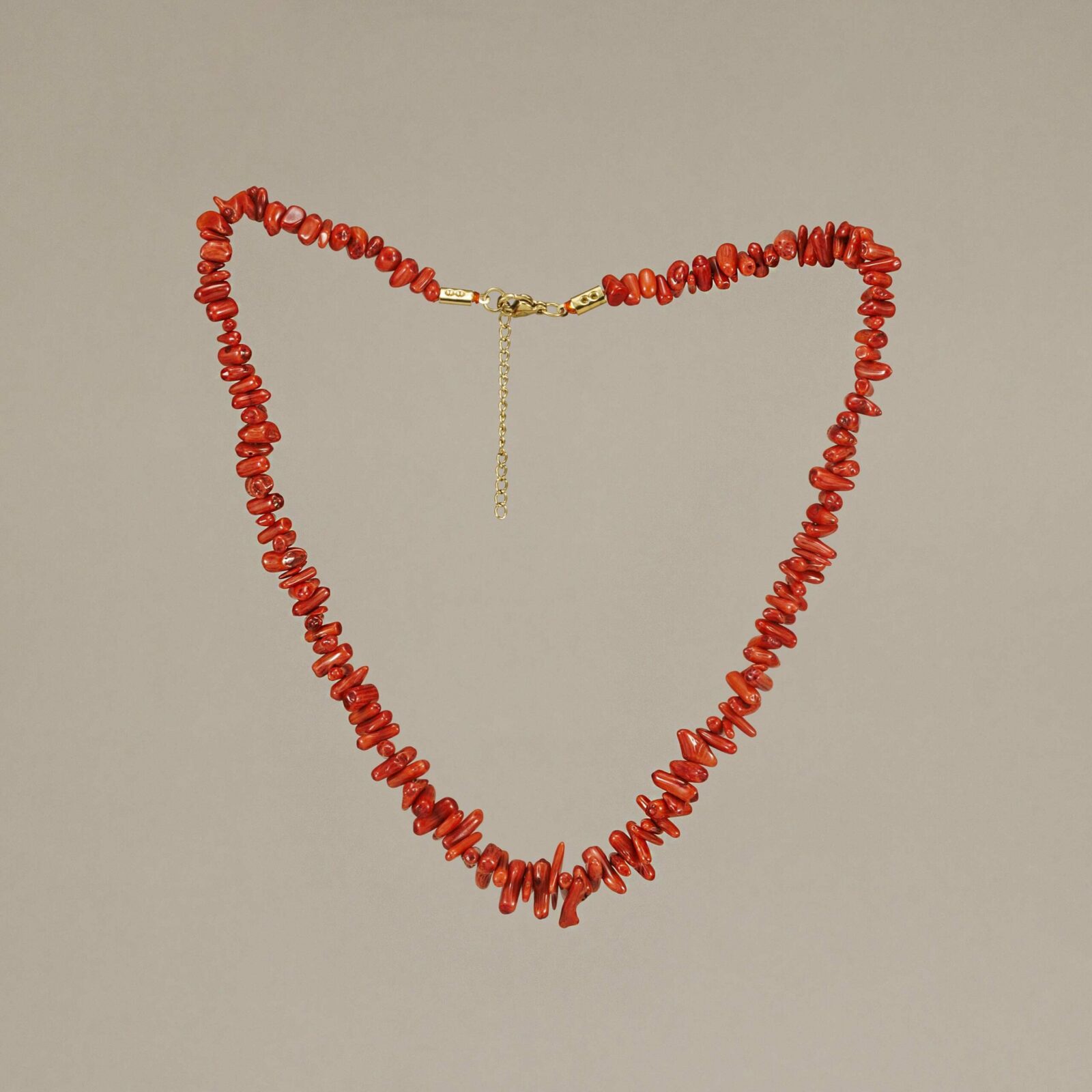 Collar de piedra natural con coral rojo o naranja, montado en acero inoxidable dorado. Waterproof, hipoalergénico y con cierre ajustable. Ideal para looks de verano y superposición de collares. ¡Un básico de la temporada!