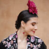 ¡Prepárate para lucir como una auténtica  flamenca con nuestra increíble Flor Flamenca Peonia buganvilla! Esta flor de estilo peonia es todo lo que necesitas para darle el toque final perfecto a tu peinado flamenco. Con un generoso diámetro de  16,5 cms y un vibrante color buganvilla, esta pieza artesanal elaborada en Sevilla elevará tu look a otro nivel.
