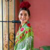 Esta pieza artesanal, está teñida a mano con amor y cuidado en Sevilla, pensando en la combinación ideal con nuestros maravillosos mantoncillos.