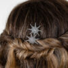 La Horquilla Andrómeda es de acero en forma de estrella de ocho puntas con circonita engarzada que da luz y brillo al pelo. Puedes elegir entre dorado y plateado, según lleves el resto de complementos.