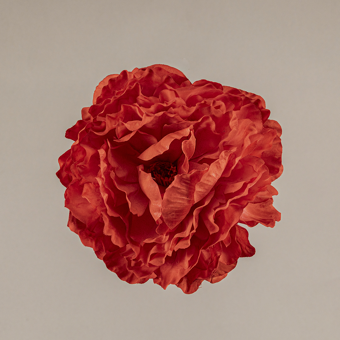 La segunda pieza de este look es una peonía  de tamaño mediano en un precioso color naranja.