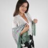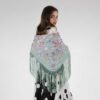 Para los flecos del Mantoncillo Agapornis DW verde, hemos optado por el estilo de vueltas lisas, hecho a mano, que aporta un toque clásico y elegante a este mantoncillo tan especial.