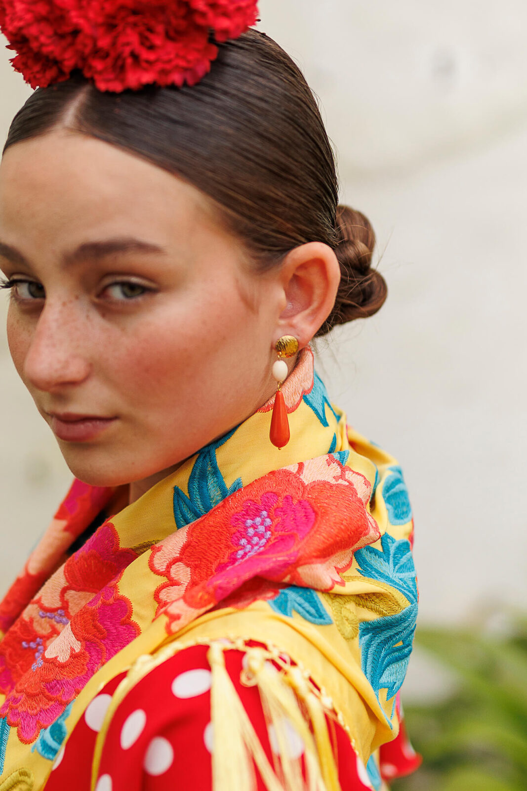 El Mantoncillo Carmen Amarillo es una de esas piezas especiales que Darwin Collection ha creado con mimo para la temporada de Feria 2025. Este diseño exclusivo y de unidades limitadas es una verdadera obra de arte hecha para lucir en esos momentos especiales que solo la feria y las tradiciones andaluzas pueden ofrecer. Inspirado en un estilo clásico, el mantoncillo está completamente bordado con flores de gran tamaño y tonos vibrantes, que capturan todas las miradas por la frescura y viveza de su combinación de colores.