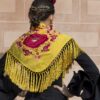 El flecado de nuestros mantones se realiza con gran destreza de forma artesanal. Además, este mantón de flamenca está bordado en varios colores, lo que le proporciona infinitas posibilidades de combinación.