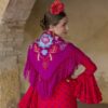 El flecado de nuestros mantones se realiza con gran destreza de forma artesanal. Además, este mantón de flamenca está bordado en varios colores, lo que le proporciona infinitas posibilidades de combinación.