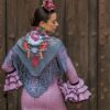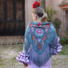 El flecado de nuestros mantones se realiza con gran destreza de forma artesanal. Además, este mantón de flamenca está bordado en varios colores, lo que le proporciona infinitas posibilidades de combinación.