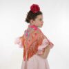 Además, si te encanta ir a conjunto con tu hija, este mantoncillo se puede comparar con el de mamá, creando un look flamenco coordinado y lleno de estilo. Su diseño incluye fleco de borlón corto, con un nudo sencillo, que está muy en tendencia este año en pasarelas como SIMOF y We Love Flamenco. Este tipo de fleco es elegante, moderno y le da un toque único al mantoncillo, haciendo que tu niña luzca espectacular.