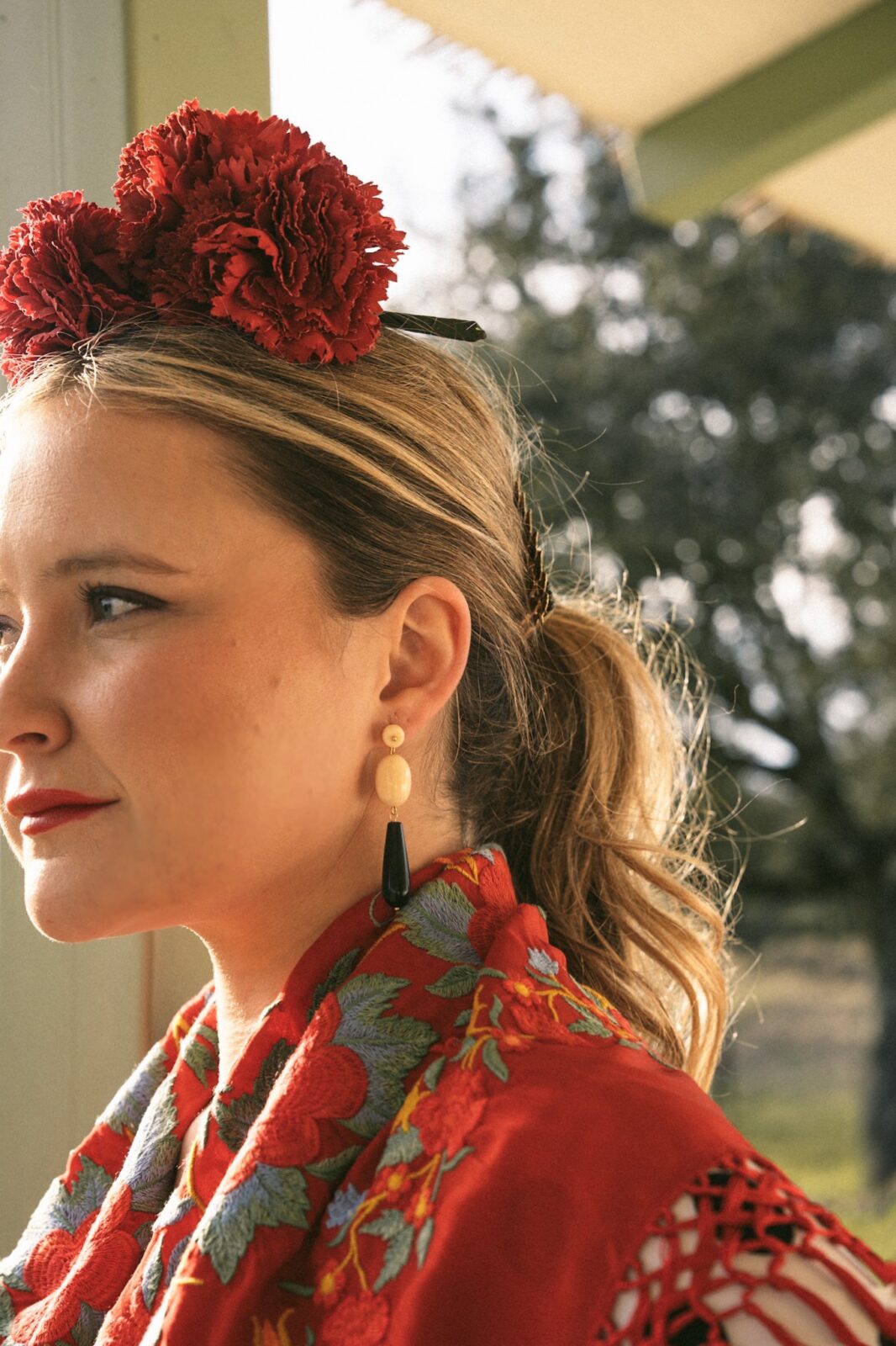 No olvides completar tu look con nuestros pendientes y peinecillos, diseñados y fabricados en nuestro taller. ¡Luce única y deslumbra en la Feria con el Mantoncillo Rosario DW!