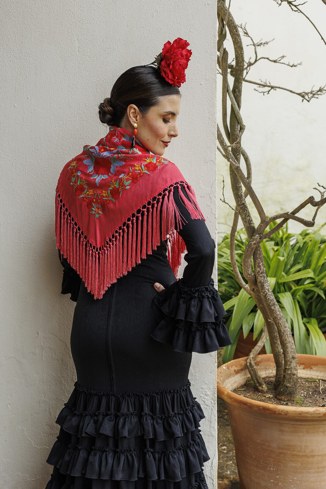 El flecado de nuestros mantones se realiza con gran destreza de forma artesanal. Además, este mantón de flamenca está bordado en varios colores, lo que le proporciona infinitas posibilidades de combinación