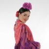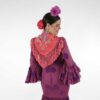 1.- Con el Mantoncillo Rosario DW fresa bordado en fucsia, lleva el Ramillete Claveles Lavanda y los Pendientes invitada Carmina.