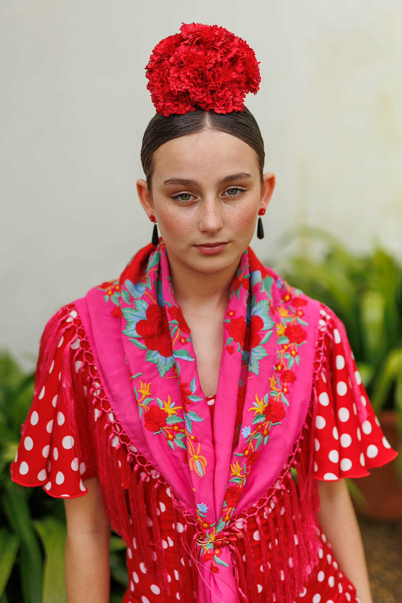 No olvides completar tu look con nuestros pendientes y peinecillos, diseñados y fabricados en nuestro taller. ¡Luce única y deslumbra en la Feria con el Mantoncillo Rosario DW!