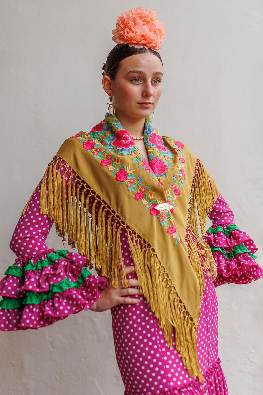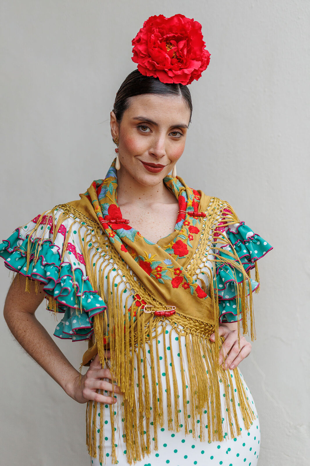 El mantón para traje de flamenca es un imprescindible en la moda andaluza y forma parte esencial del atuendo flamenco de alta calidad. En nuestra región, vestirse adecuadamente para ferias y eventos es una tradición que valoramos profundamente.