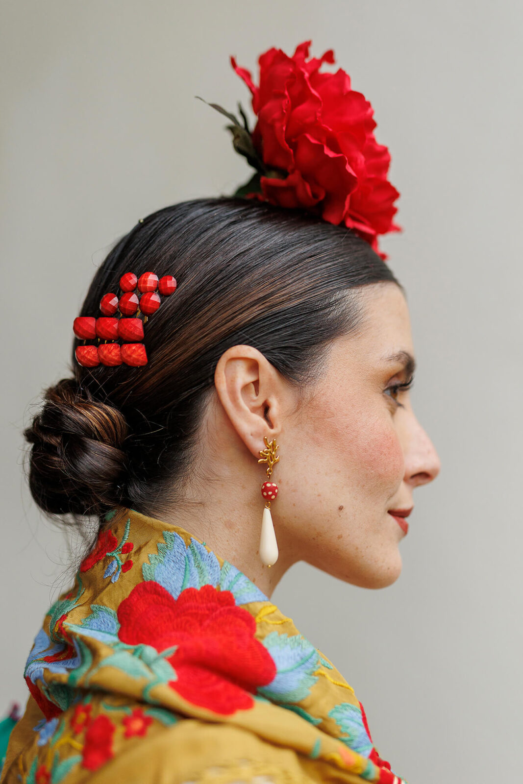 No olvides completar tu look con nuestros pendientes y peinecillos, diseñados y fabricados en nuestro taller. ¡Luce única y deslumbra en la Feria con el Mantoncillo Rosario DW!