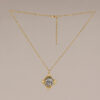 Medalla Griega bicolor bañada en oro con piedras naturales en blanco o azul. Inspirada en diseños antiguos, exclusiva y llena de estilo.
