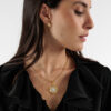 La medalla cuelga de una cadena fina de eslabones dorados, pequeños y lisos, pensada para no restarle protagonismo al colgante. El resultado es un diseño exclusivo, elegante y a la vez muy actual, perfecto tanto para looks del día a día como para ocasiones más especiales.