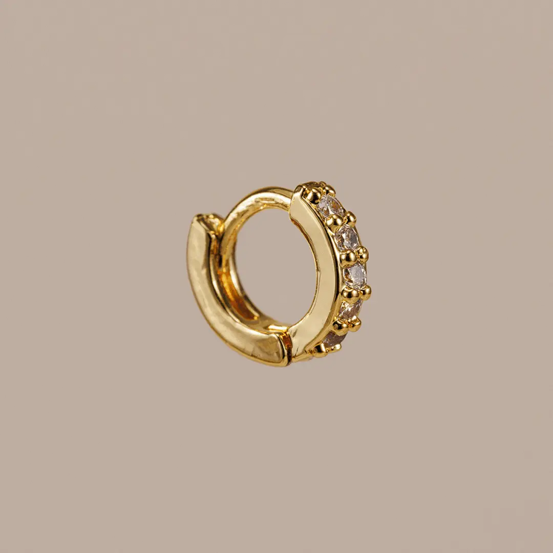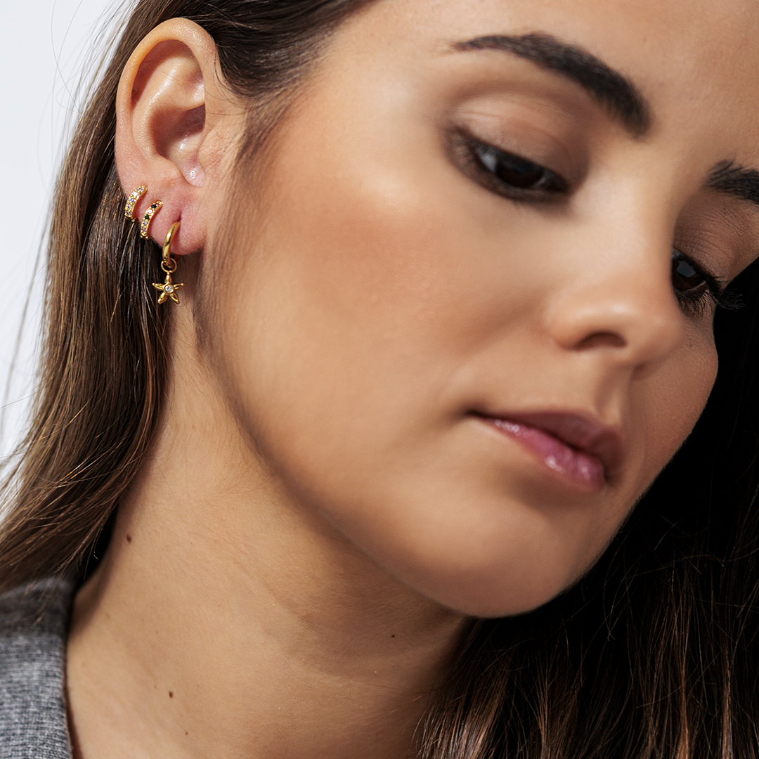 Es waterproof y hipoalergénico, perfecto si tienes la piel sensible o si te gusta llevar tus minis 24/7 sin preocuparte por el agua, la humedad o el desgaste. El color se mantiene impecable y las circonitas siguen brillando como el primer día, aunque lo uses muchísimo.