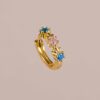 Este Mini Aro presenta una exquisita disposición de tres circonitas engarzadas, ofreciéndote dos opciones irresistibles. Puedes elegir entre el modelo con todas las circonitas blancas para un brillo clásico y atemporal, o la versión con dos circonitas azules en los extremos y una en rosa claro en el centro para un toque de color juguetón.
