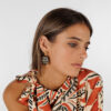 Cada par está hecho a mano en corteza de coco y recubiertos con resina, lo que hace que ninguna pieza sea igual a otra. Sus vetas, texturas y pequeñas imperfecciones son parte de su encanto, porque lo natural siempre tiene más magia. La parte superior, con forma de sol, está realizada en acero inoxidable dorado, un material hipoalergénico, resistente y que mantiene su brillo con el paso del tiempo.