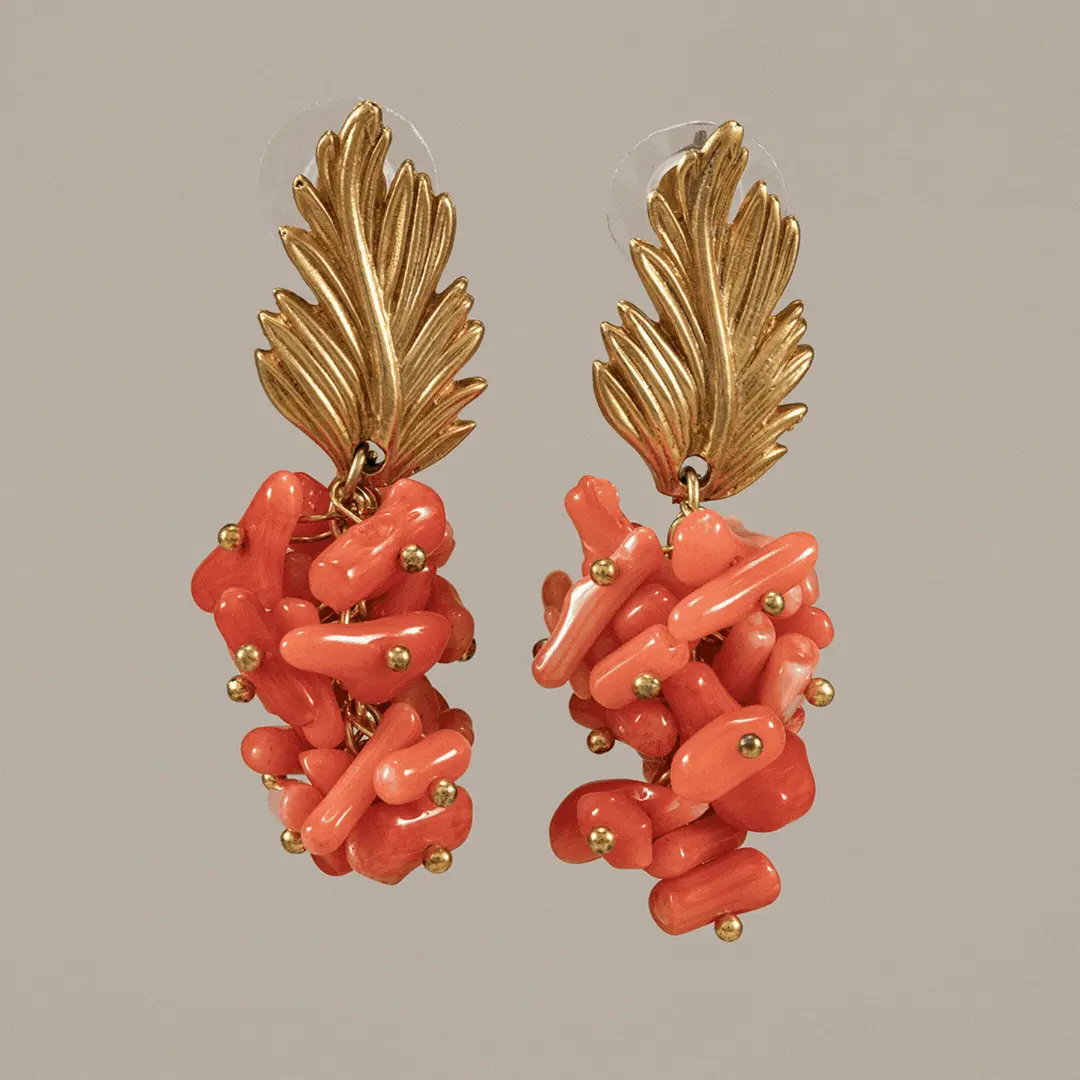• Piedras en forma de ramas de coral naranja, con un aire más orgánico y flamenco