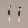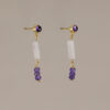 Puedes elegir entre distintas combinaciones: cabeza redonda bañada en oro con perla, amatista u ónix, barra cuadrada de cuarzo rosa, jaspe rojo u ónix, y final en mini piedras como perla de río, turmalina fresa o turmalina malva. Su cierre de mariposa los hace súper cómodos y perfectos para llevar todo el día.