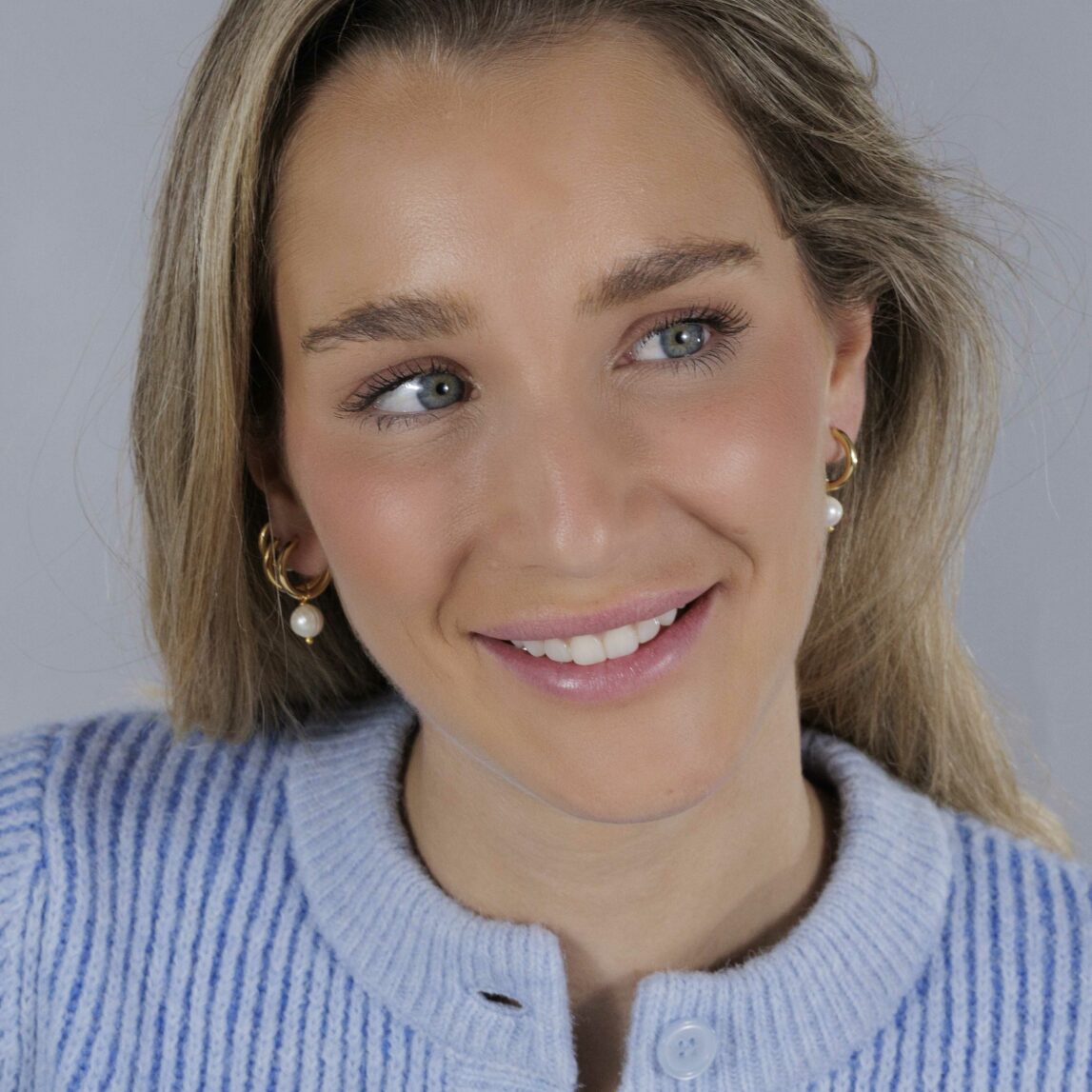 Estos Pendientes perlas Middleton son simplemente encantadores. En la parte superior, llevan un aro dorado de presión y le  cuelga una perla cultivada de agua dulce de 5/6 mm en un hermoso tono blanco. ¡Una combinación perfecta de elegancia y sofisticación!