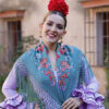 Esta pieza artesanal, está teñida a mano con amor y cuidado en Sevilla, pensando en la combinación ideal con nuestros maravillosos mantoncillos.